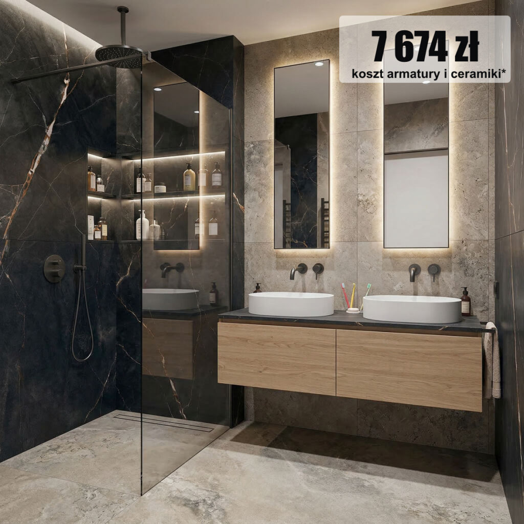 Łazienka budżetowa – funkcjonalny projekt w rozsądnej cenie Realne koszty łazienek – zobacz przykłady Mała łazienka 4,2 m² w kamienicy – jak zmieścić wszystko … Funkcjonalny podział stref w trudnym układzie. Zobacz, jak to zaprojektowaliśmy Łazienka w bloku bez przeróbek – styl japandi i realny koszt Nowoczesna forma i przemyślana ergonomia. Sprawdź szczegóły projektu Wanna czy prysznic w małej łazience? Sprawdź gotowy układ Połączenie komfortu i funkcjonalności w większej przestrzeni. Zobacz, jak zaplanować układ Wąska łazienka bez okna 3,4 m² jak ją zaprojektować Mała przestrzeń, maksimum funkcji i światła. Sprawdź układ i zastosowane rozwiązania Łazienka w kamienicy ze starymi … Projekt dopasowany do starej instalacji i charakteru wnętrza.Zobacz, jak rozwiązaliśmy ograniczenia Mała łazienka z wanną i prysznicem – jak to zrobić Wanna i prysznic w jednej przestrzeni bez kompromisów.Zobacz cały projekt Mała łazienka 4 m² z wanną i pralką Mała łazienka z pralką wymaga dobrego układu, żeby nie stracić miejsca do przechowywania i wygodnego przejścia. Mała łazienka dla dwojga walk-in i efekt wow Dwie osoby, jedna łazienka – układ, który pozwala korzystać z niej jednocześnie bez chaosu i kompromisów. Mała łazienka z wanną 2w1 Wanna z parawanem to wygodne rozwiązanie 2w1 do małej łazienki bez miejsca na kabinę. Łazienka na poddaszu z wanną i walk-in Łazienka na poddaszu z wanną wolnostojącą i strefą walk-in to funkcjonalne połączenie komfortu kąpieli i wygodnego prysznica w jednej przestrzeni.